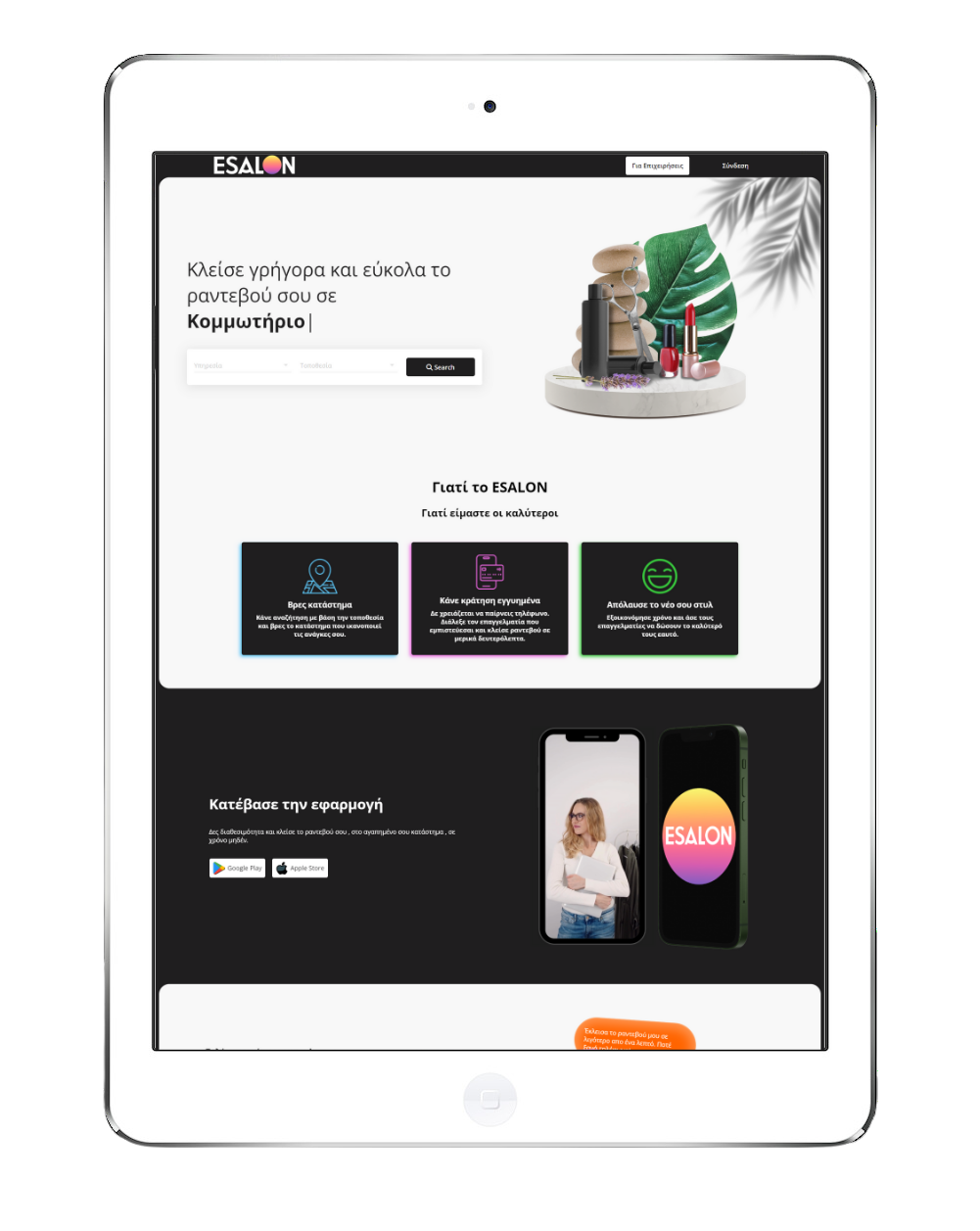 Γίνετε μέλος μιας κοινότητας επαγγελματιών ομορφιάς και αποκτήστε πρόσβαση σε εργαλεία για να βελτιώσετε τις υπηρεσίες σας και την ικανοποίηση των πελατών σας. Αυξήστε τα έσοδά σας με στοχευμένη προβολή στο esalon.gr!